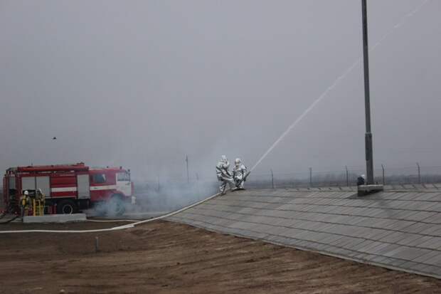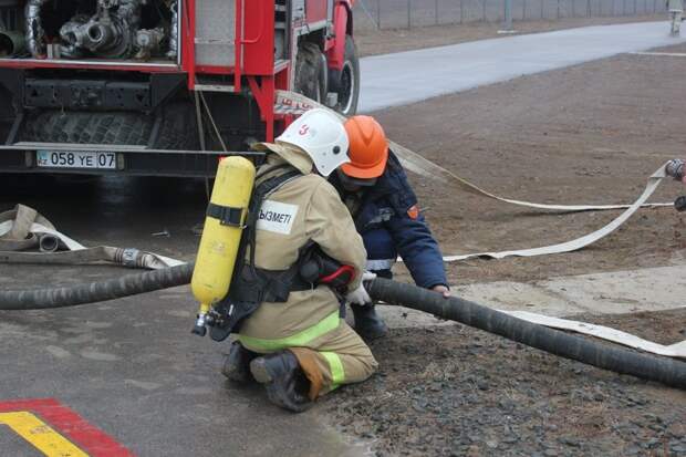 По сценарию, в 16:00 на пульт дежурного поступил сигнал о горении резервуара с бензином АИ-92. Основной задачей проводимого учения являлось определение расчетов сил и средств, необходимых для ликвидации пожаров такого характера, отработка действий пожарных и сотрудников объекта и объектовой пожарной команды при тушении пожара, подготовка и проведение пенного тушения, а также проверка подачи воды и работы повышающих насосов объекта.Основным этапом ведения действий при возгорании на нефтехранилищах является непрерывная подача огнетушащих средств для охлаждения горящих и соседних резервуаров до проведения пенной атаки. После подачи пены условный пожар локализовали и ликвидировали. Ранее пожарные учения провели в одной из школ Атырау.