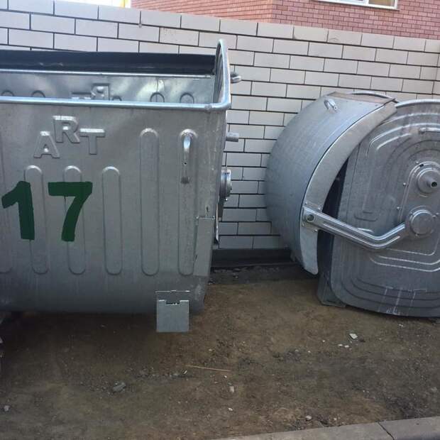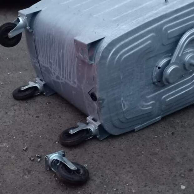В том же месяце новые контейнеры неизвестные злоумышленники стали разбирать на части.Чаще всего пропадают колеса с крепежными гайками. Также была попытка снять и унести крышки контейнеров.
