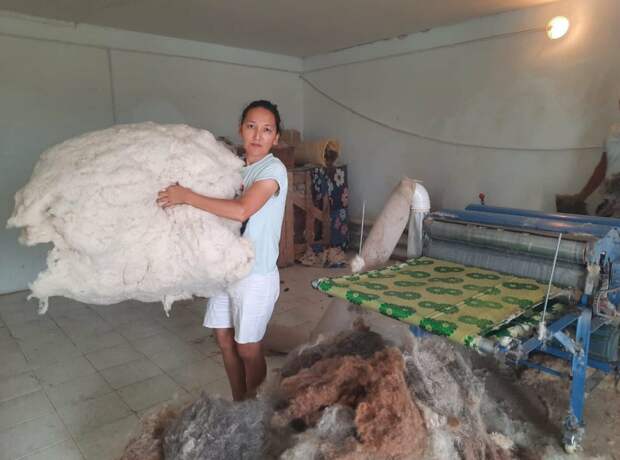 -Анам өте шебер адам болды. Жүн жуып, тоқыма тоқып, сырмақ сырып, көрпе тігіп, киіз басатын. Бала күнімнен осы еңбекті көріп өстім. Әкем өмірден ерте өткен соң, анама көмектесіп, қолқабысымды тигіздім. Есейгесін педагог мамандығын алып, ол бойынша жұмыс жасай жүріп, көрпе тігуді де қолға ала бастадым. Шағын көрпелерден бастап, қыз жасауын тігетін дәрежеге жеттім. Тіккен өнімімді сатып, табыс көзіне айналдырдым.  Шаруа қожалықтарында малдың жүнінің тектен-текке қоқысқа кетіп жатқанын көргенде, жүн өңдейтін жеке шеберханамды ашу туралы ой келді. Бастапқыда жолдасым мен балаларым көмектесті. Кейін қарамағыма 2 жұмысшы алдым. Бұған қоса үйренуге ниетті оқушыларға бос уақытымда жүнді өңдеуді және көрпе тігуді, құрақ оюды үйретіп жүрмін. Болашақта шеберханамды кеңітіп, жұмысшы күшін көбейтіп, жүннен жіп шығаруды және киіздің заманауи түрлерін басып шығаруды ойластырып жүрмін. Мақсатым – халықты отандық өніммен қамтамасыз ету, деді кәсіпкер.