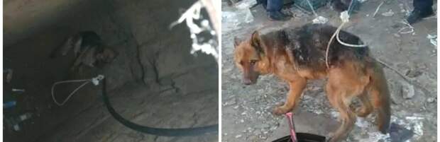 «Прибыв на место вызова, спасатели немедленно приступили к спасательной работе. Для спасения собаки использовали верёвку с петлей на конце: опустив в яму, продели через собаку и подняли животное на поверхность.
